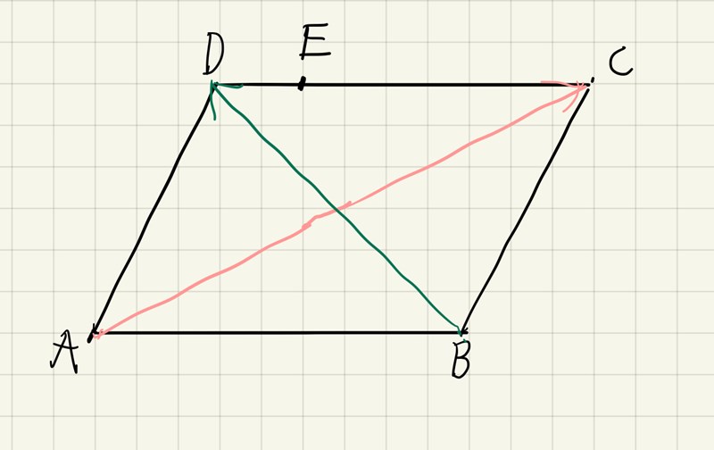 AE=27AB+ADAC=AB+ADBD=-AB+ADAE=qBD+wACqBD=q(-AB+AD)wAC=w(AB+AD)q(-AB+AD)+w(AB+AD)=27AB+ADw-q=27w+q=12w=97w=914q=514