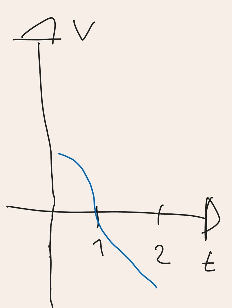 Här från 0 to 1 v positiv går kroppen till höger x-x axel och v minskar eftersom ACc är negativ och speed eller fart minskar. I tiden 1 och 2 v negativ och går kroppen till vänster om x-x och v minskar but farten ökar. Vad bror det på . När jag tänker på v när ökar eller minskar tänker jag på acccelaratin men om farten vad ska jag tänker eller bestämma