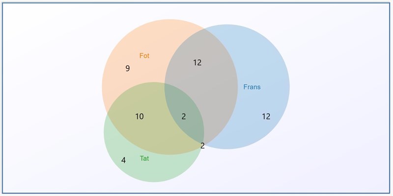 a) Hur många av personerna i vänthallen är varken franska, fotbollsspelare eller tatuerade?