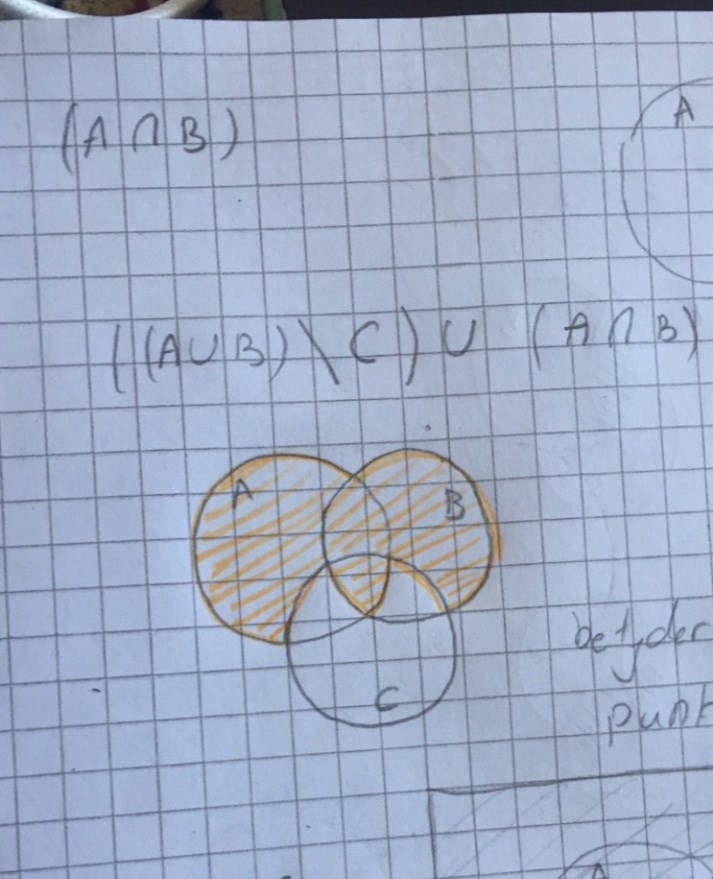 Sedan ska man beskriva mängden genom att använda A,B,C med olika mängdoperatorer på ett annat sätt.