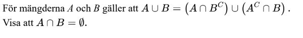 Det gäller alltid att AUB = [A & BC] U [A & B] U [B & AC] (RITA!)