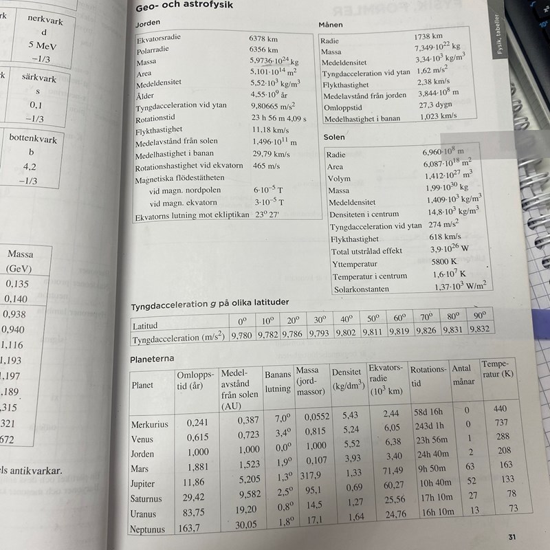 Ja, längst bak i fomel boken står det att omloppstiden är på sid 31