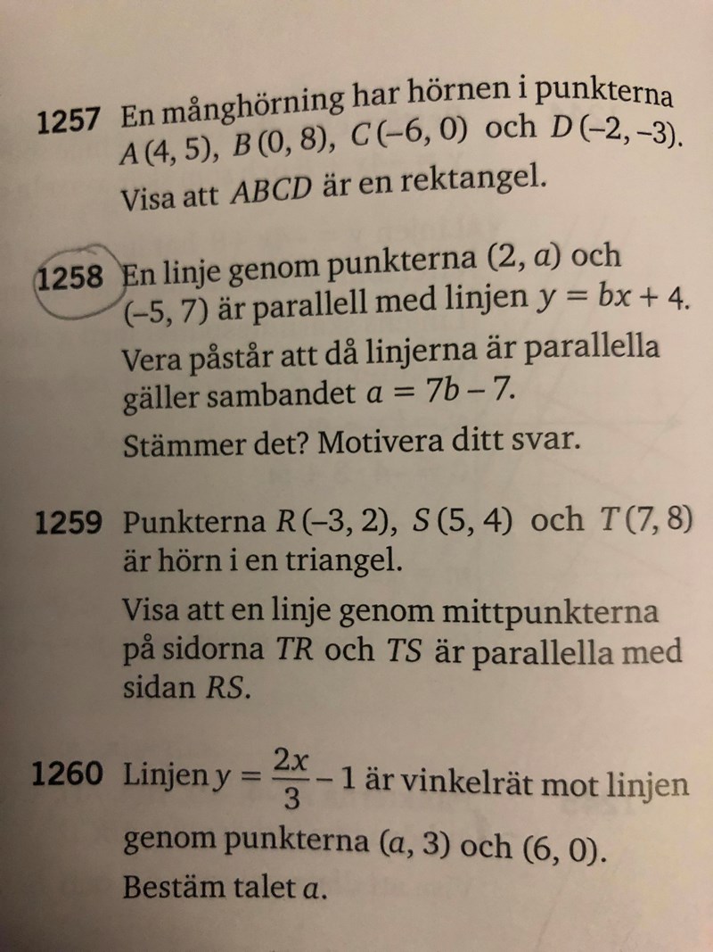 Linjerna är parallella när k-värderna är lika, alltså då . Vad får du om du bryter löser ut a?