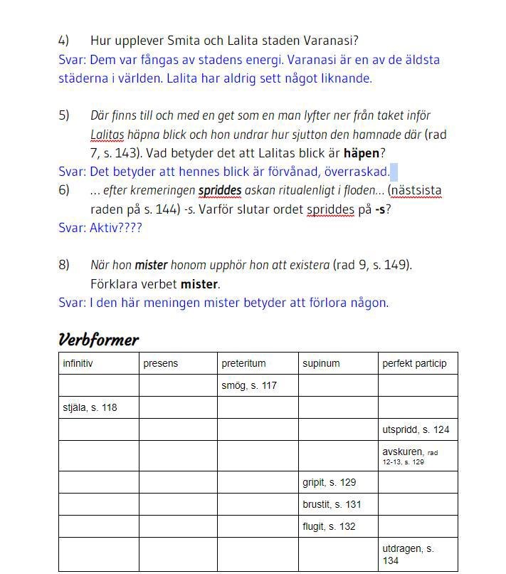 jag gjorde 95% av uppgiften men jag kan inte lösa dessa två saker. Om du kan hjälpa lite? Du kan titta på bilden. Jag behöver hjälp med fråga 6 och verbformer. Tack so mycket. Ha det bra.