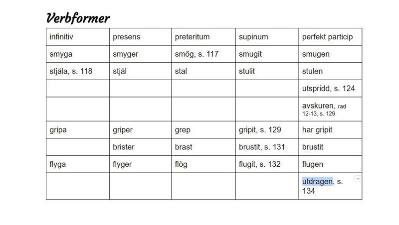Vad ska du göra i tabellen med verbformer?