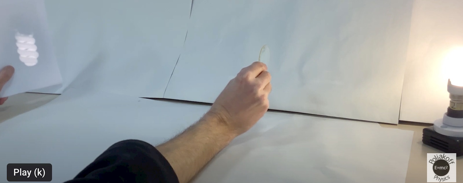 Om du har en lins någonstans (förstoringsglas, lupp) kan du projicera en reell bild på ett papper. (Det är skärmen, alltså inte en skärm av en iPhone eller dylikt.)