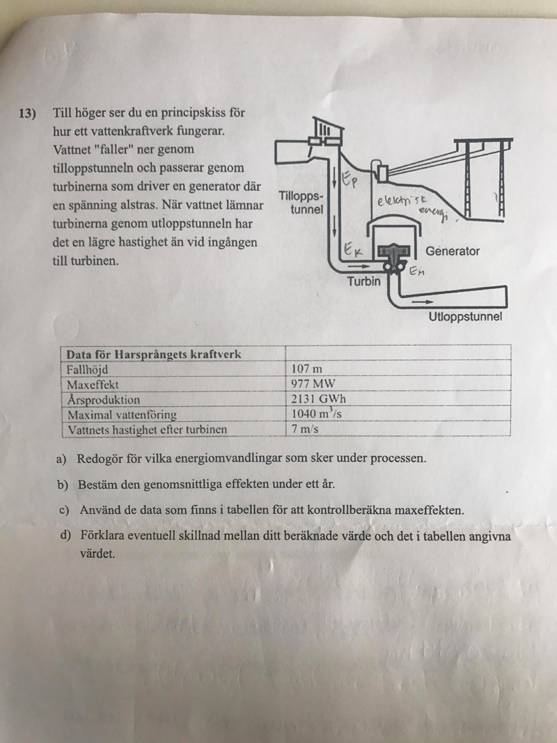 Verkningsgrad och effekt för vattenkraft?