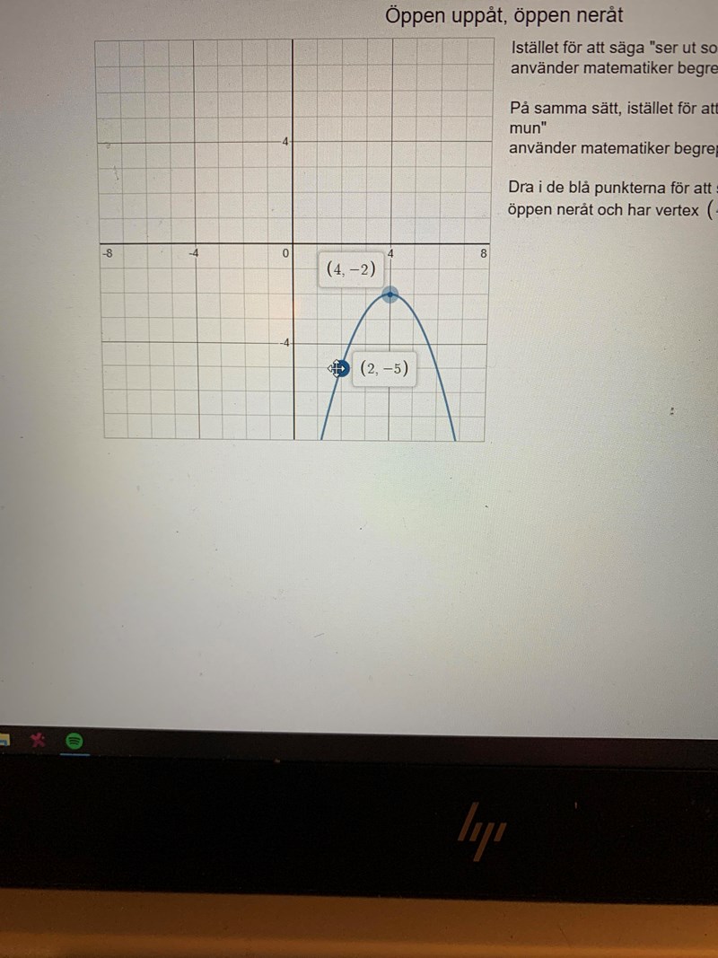 Förlåt, vart ska den andra punkten vara då? Parabeln ska ju vara öppen nedåt :(