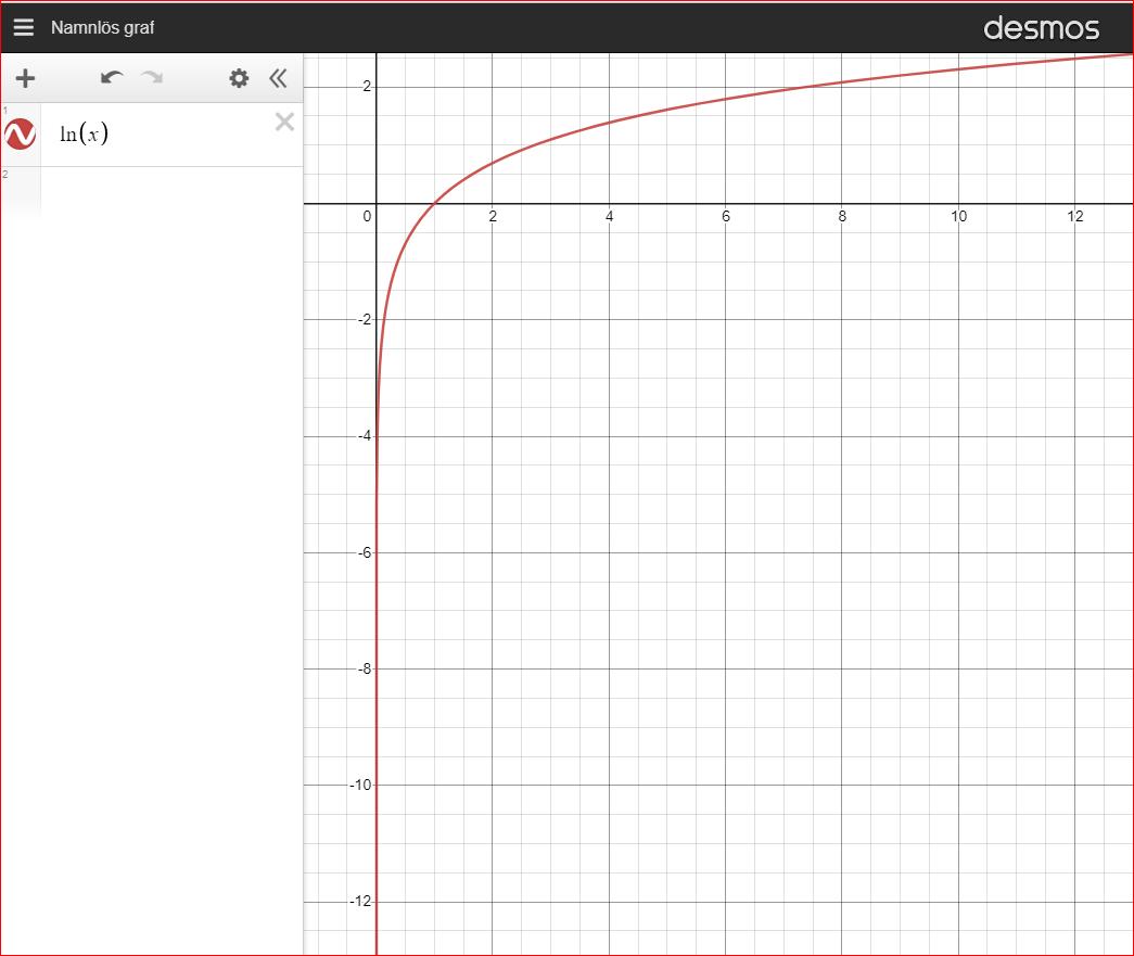 Använd en grafräknare eller ett digitalt verktyg för att skissa grafen till y = ln(x).