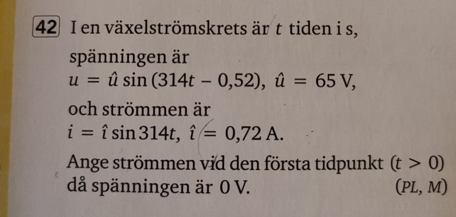 och då är i 0,72*sin(314*0,00166)=0.359 vilket kan avrundas till 0.36A som facit säger.