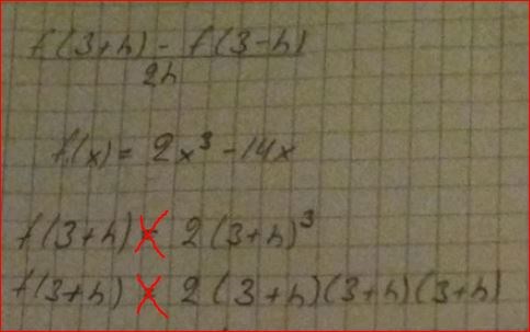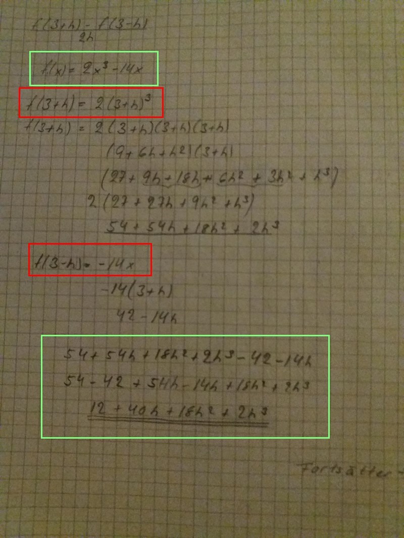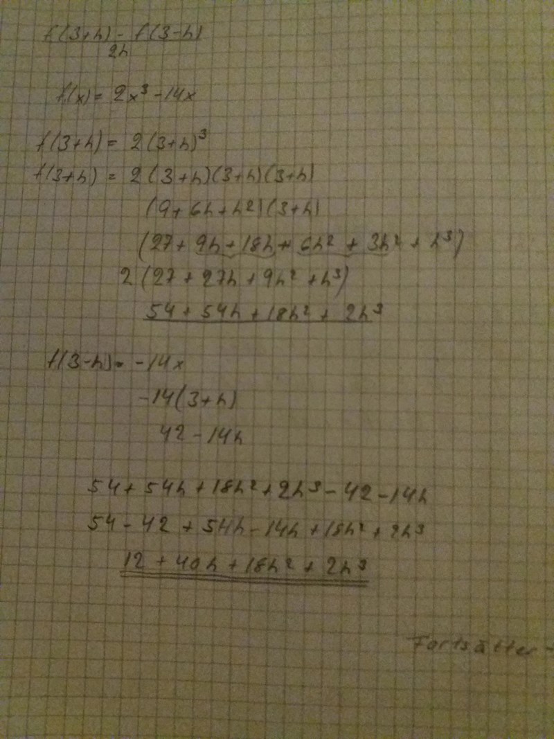 2) Jag skulle ha lagt ihop hela f (3-h) och förenklat hela det där först och sedan ta f (3). Skulle jag ha förenklat det andra först skulle tecken felet inte ha kommit. Där blev det fel.