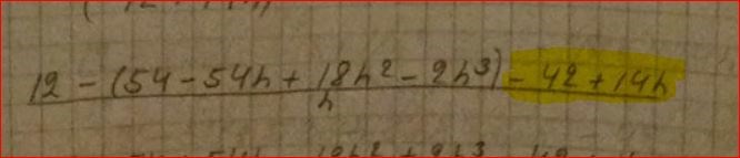 Det ska inte vara några likhetstecken här. Och du tappade bort ett minustecken framför termen 42.