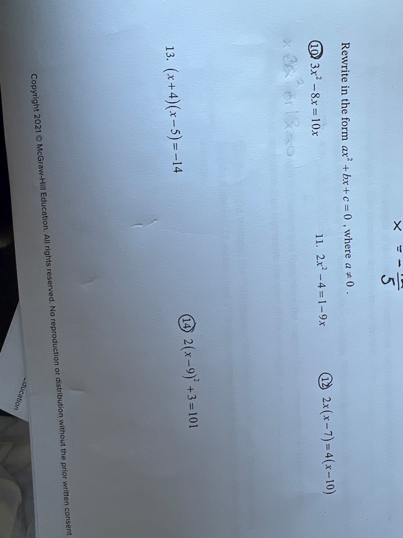 Vad det ser ut som är att på uppgift 10 ska du skriva om ekvationen så att