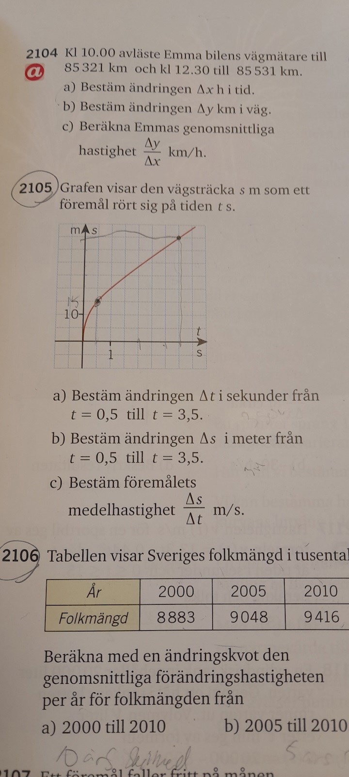 Hur mycket ändras t då vi går från t=0,5 till t=3,5?