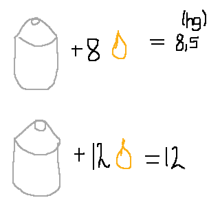 En flaska som innehåller 8 dl olja väger 8,5 hg. Man fyller på mer olja så att flaskan innehåller
