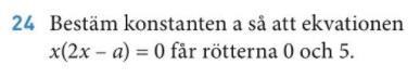 Vi har rötterna 5 och 0, vad är a i x(2x-a)?
