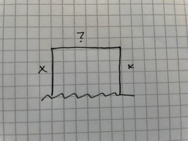 Vid en isfisketävling i Tärnaby så ska arrangören sätta upp ett inhängnat tävlingsområde på sjön som angränsar mot en plogkant. Området är rektangulärt och man behöver inte sätta något rep mot plogkanten. Arrangören har totalt 428 m rep till inhängnaden. Hur ska arrangören sätta upp repet för att arean ska bli så stor som möjligt för det inhängnade området?