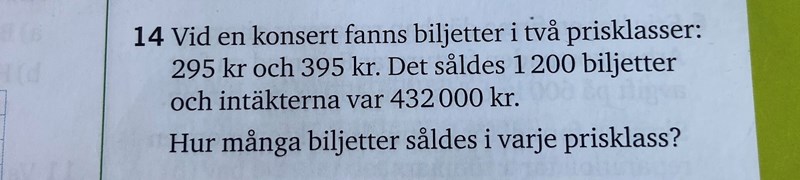 "Det såldes 1200 biljetter" ger då ekvationen: .....
