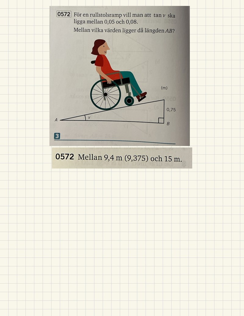 Vid en rullstolsramp vill man att tangens v ska ligga mellan.. ..vilka värden ligger AB?