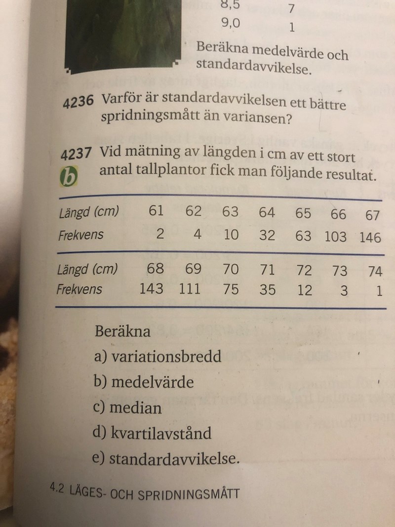 på c ) 4237 uppgiften kan jag alls inte förstå varför medianen blir just 68, enligt mig borde medianen vara 67