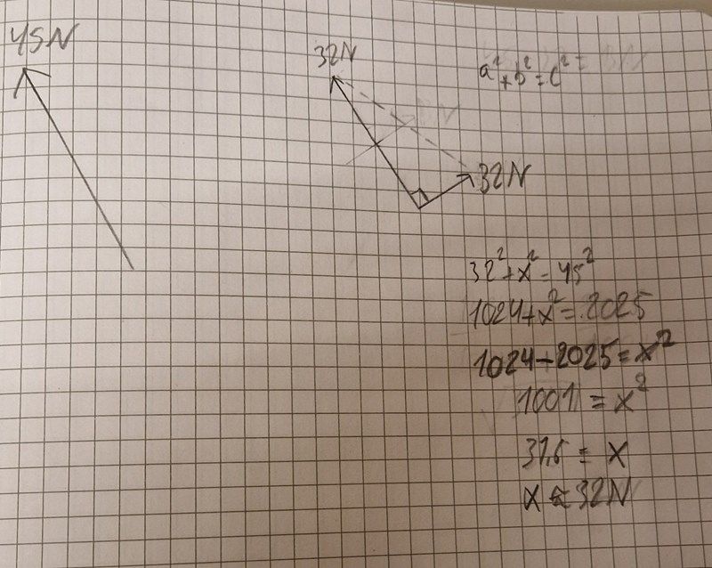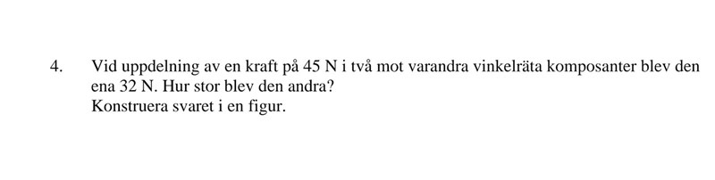Vid uppdelning av kraft i två mot varandra vinkelräta komposanter.