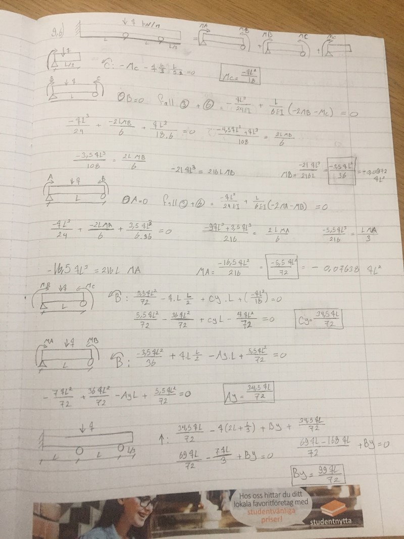 kan nån bekräfta om detta metod stämmer för att beräkna moment när man delar en obestämd balk?