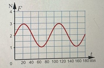 Det är mera noggrant att avläsa perioden från nollgenomgången (nja, vid F=2 N) och så många perioder som möjligt, alltså (180 ms)/2. Men det ger samma värde.