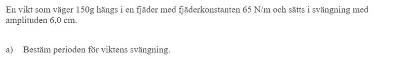 då t= 0 så kan den harmoniska svägningen beskrivas med funktionen: