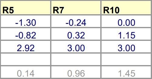 så i blått är värdena, och i grått är det viktade medelvärdet.