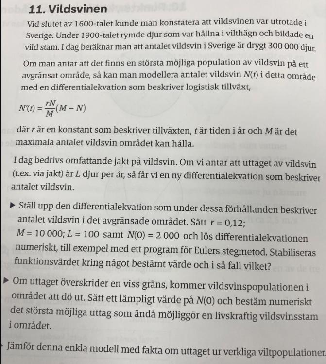 Du ska tydligen ta differentialekvationen som står där, och införa en term som säger att L vildsvin skjuts per år.