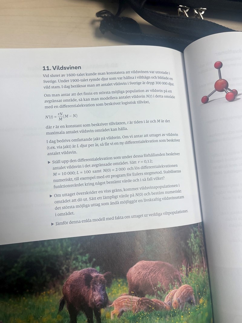 När du läser differentialekvationen med exempelvis Eulers stegmetod, ser du någonstans då antalet vildsvin slutar variera så mycket? I så fall, när? :)