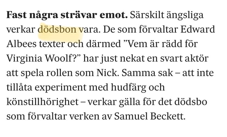 Egentligen tycker jag det är en konstig formulering att dödsbona är emot det ena eller andra. Dödsbon har ingen åsikt. Det är ju nu levande arvingar som står för åsikterna.