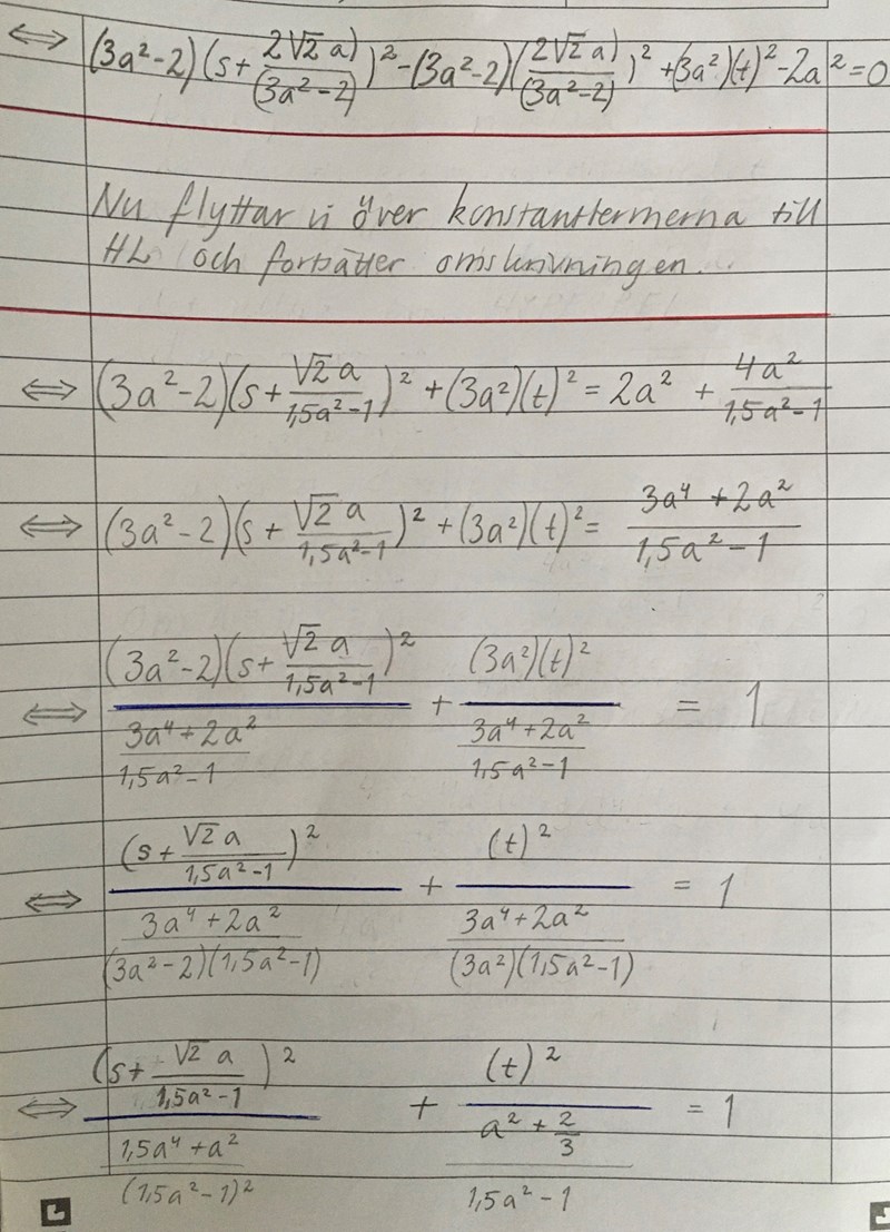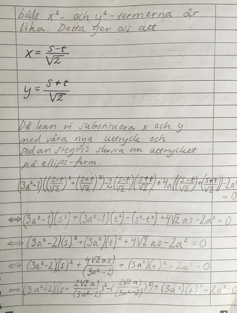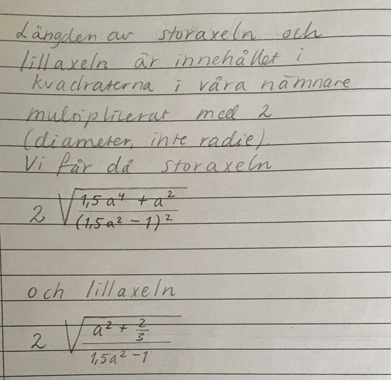 Nu har jag räknat ut storaxelns längd och lillaxelns längd genom hjälp från en kurskamrat. Så här gjorde jag:
