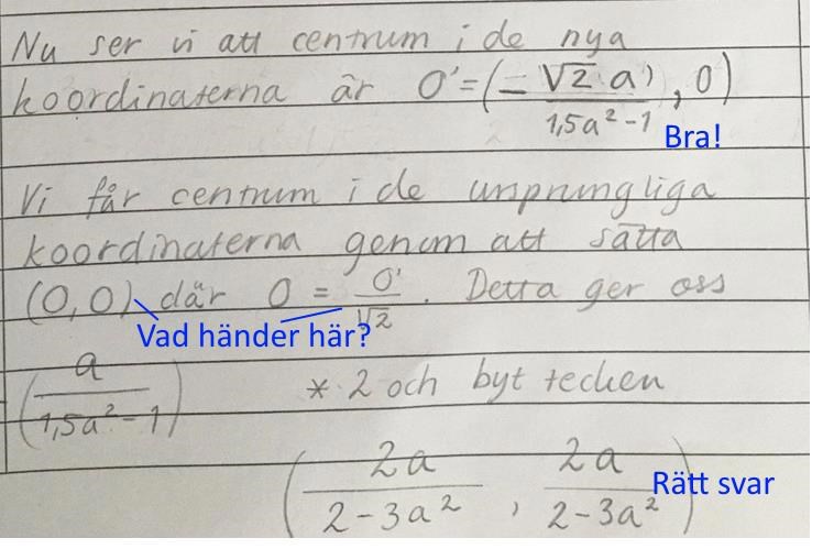 Nu har jag beräknat även och jag fick den koordinaten till samma som , dvs. .