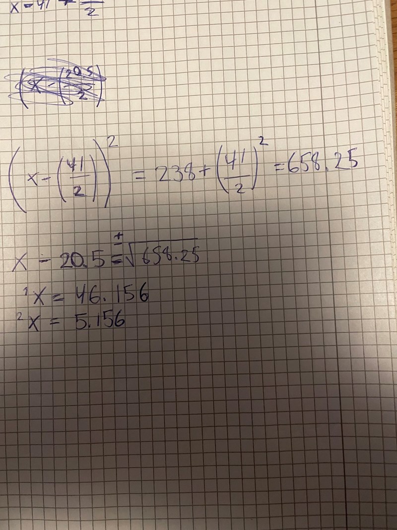 Kvadratkomplettering gav mig då X = 20.5+Sqrt(20.5^2 + 238)