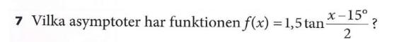 Funktionen f(x)=tan(x) har vertikala asymptoter vid grader, eller hur? Det behöver man veta eller slå upp förstås.