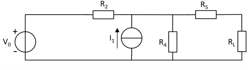 R5 och RL ligger i serie och kan ersättas av ett nytt vars värde du säkert kan räkna ut.R4 och det nya ersättningsmotståndet är parallella. Varför? Jo, de två motstånden är förbundna med varandra i båda ändarna. Utan att det ligger någon annan komponent emellan.