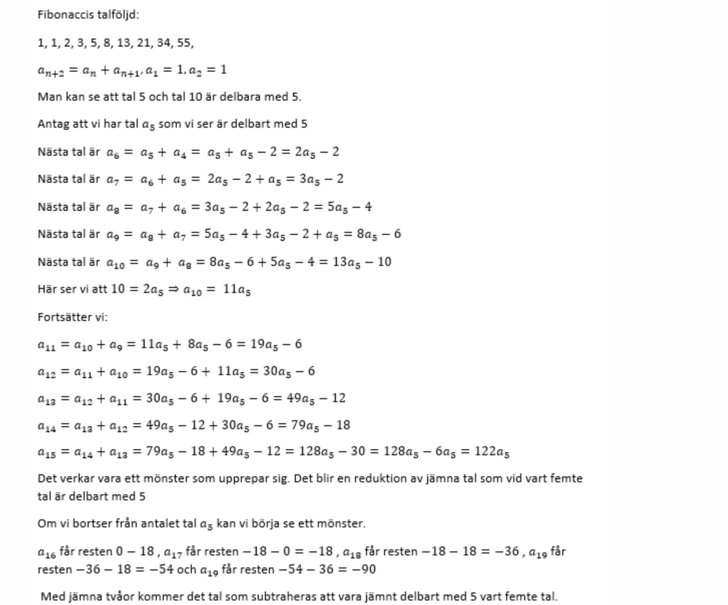 Vilka av Fibonacci talen är jämt delbara med 5?