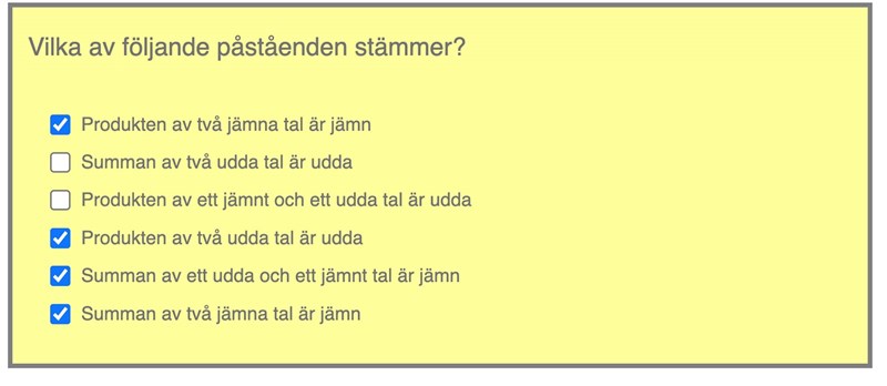 Vilka av följande påstående stämmer? (Udda och jämn tal)