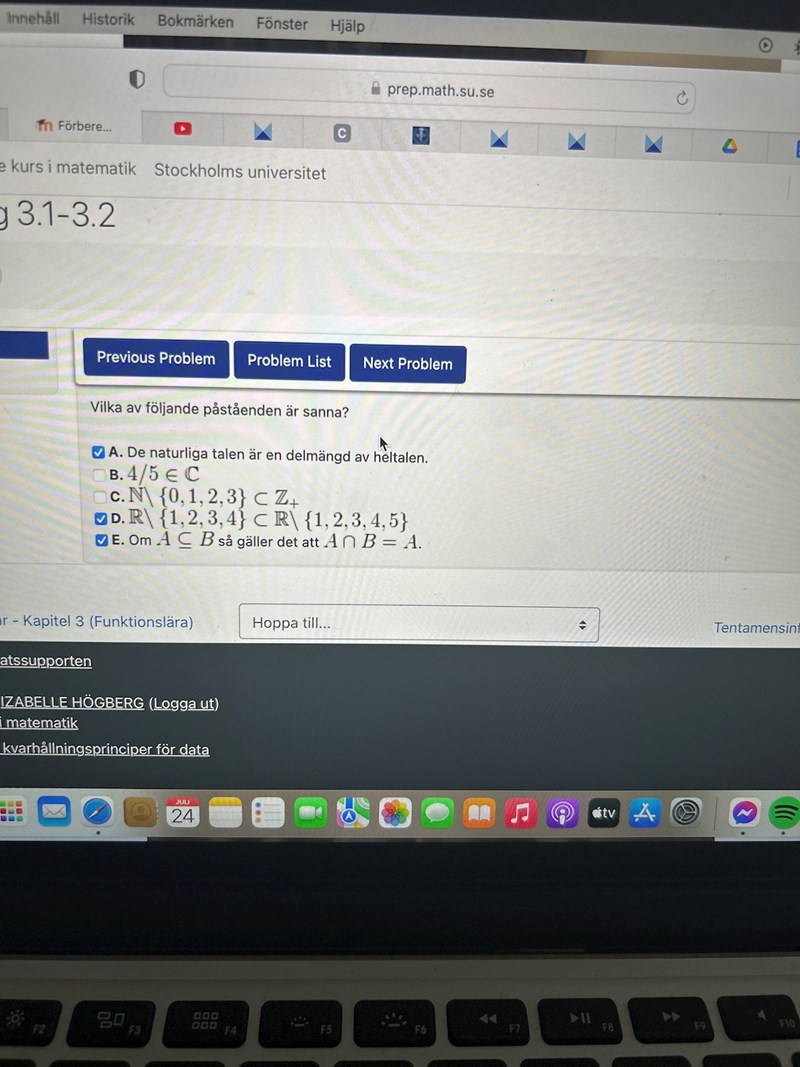 Hur är det med D - vilka tal ingår i R \ {1,2,3,4} ? Vilka tal ingår i R \ {1,2,3,4,5}? :)