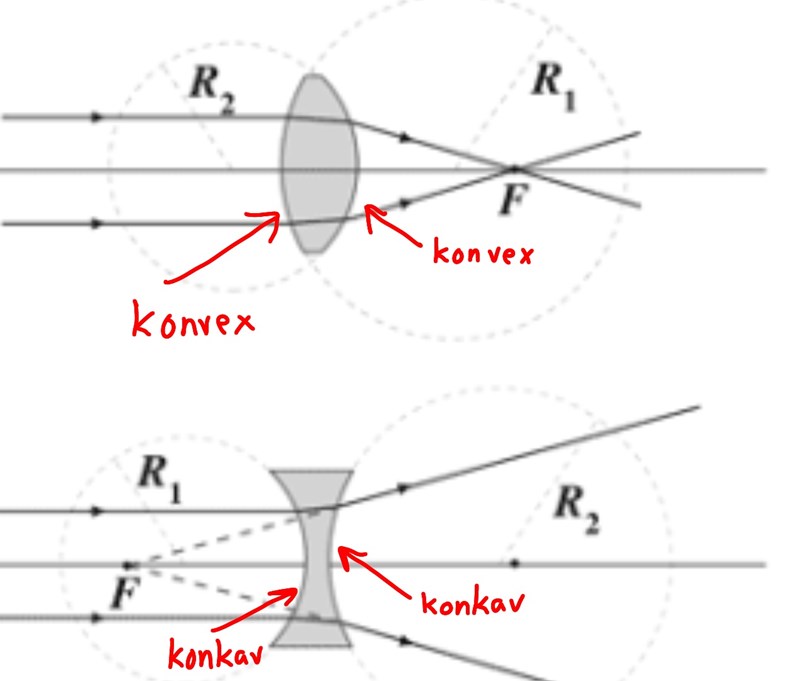 Ok då förstår jag vad du menade med att konvexa yta är på höger sida och konkav sida är på högra sida. Jag kan se att ytorna liknar den bikonkava bilden samt bikonvexa bilden