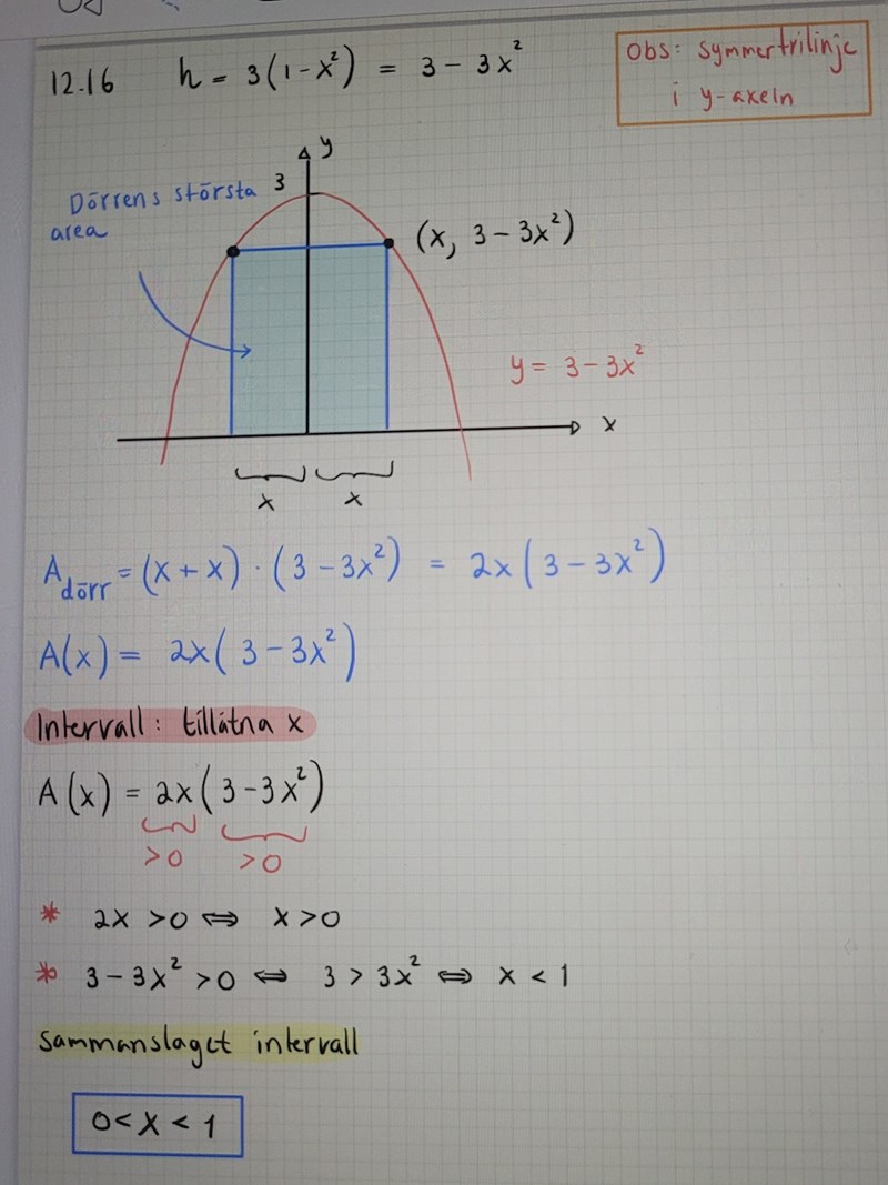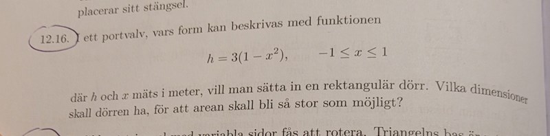 Ett annat sätt att se det är att dörrens andra hörnpunkt ligger i (-x, 3-3x2)