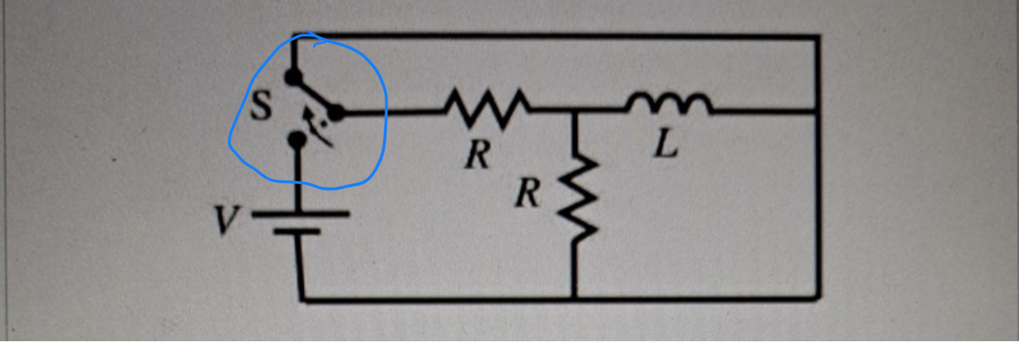 Det beskriver kretsen efter det att strömbrytaren slagits om. Då är spänningskällan bortkopplad så den behöver vi inte tänka på här.