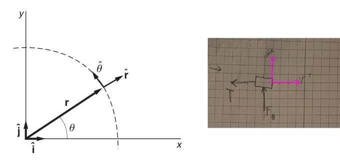 Å gudars uppgiften var inte så dålig. Nej men jag insåg nu varför , multipliceras i slutet. Det händer när man deriverar en bas enhetsvektor och m.a.p på vinkeln men eftersom vinkeln är m.a.p tid så används kedjeregeln.