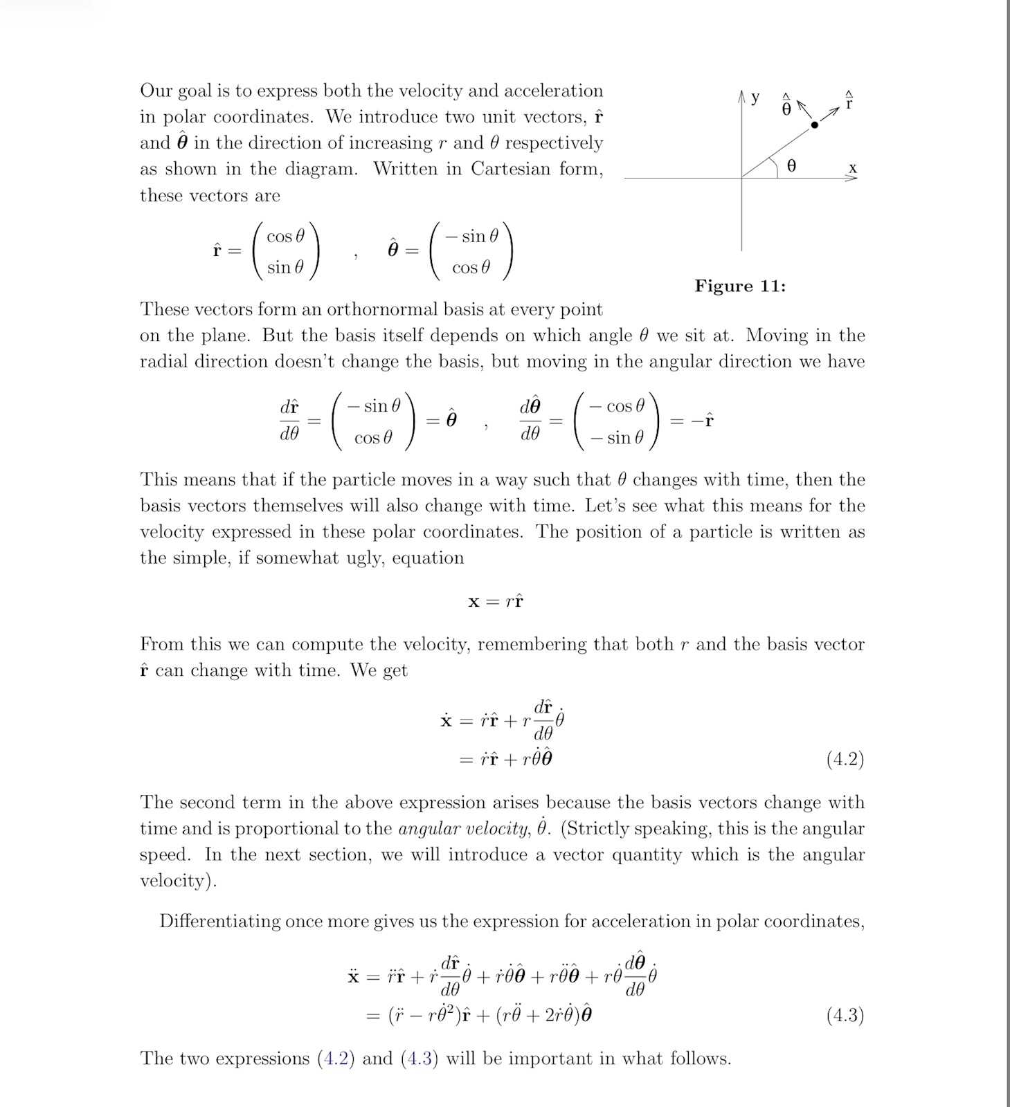 Edit: du hjälpte mig förstå var accelerationen kommer ifrån. Dock ett problem, det känns så konstigt ibland. T.ex. derivera x2 så får man , du vet vanligtvis får man ju bara 2x du vet från gymnasiematten så det känns inte lika intuitivt. Här känner jag lite samma för sista termen i accelerationen då han "bara" lägger till i slutet. Idk det känns konstigt bara