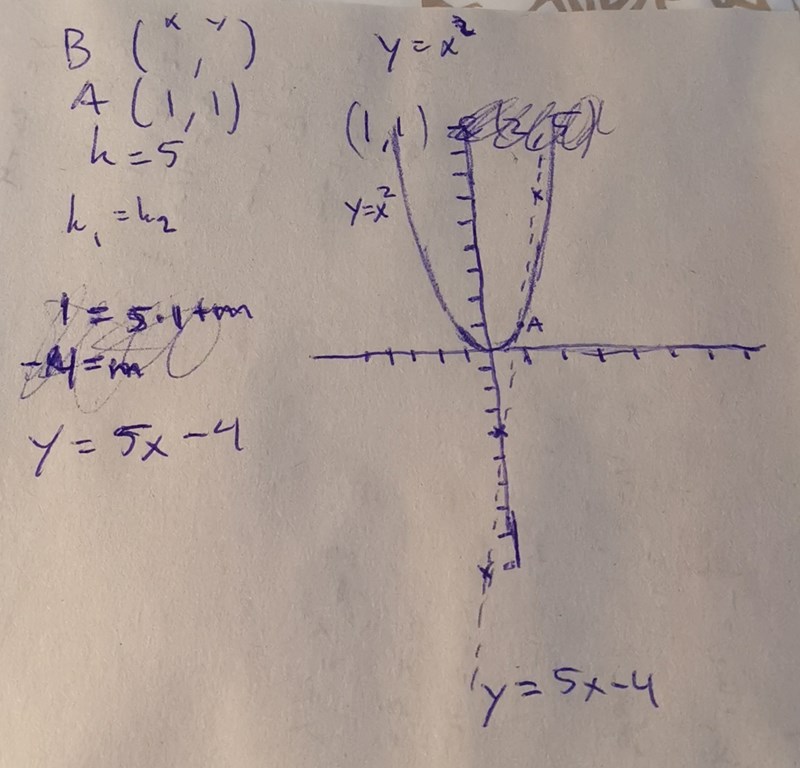 Men om jag tittar på original bildens kurva(y=x^2), och ska se ifall punkt B har koordinat (4,16), så tycker jag inte att det stämmer.