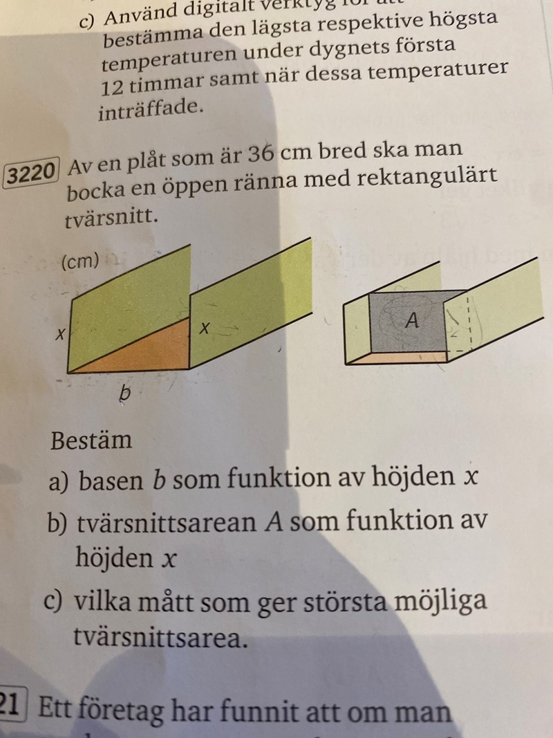 Fick då ut att x=9 vilket är rätt, dock så fattar jag inte varför dem i facit skriver att B=18. Och att arean därför blir 162cm