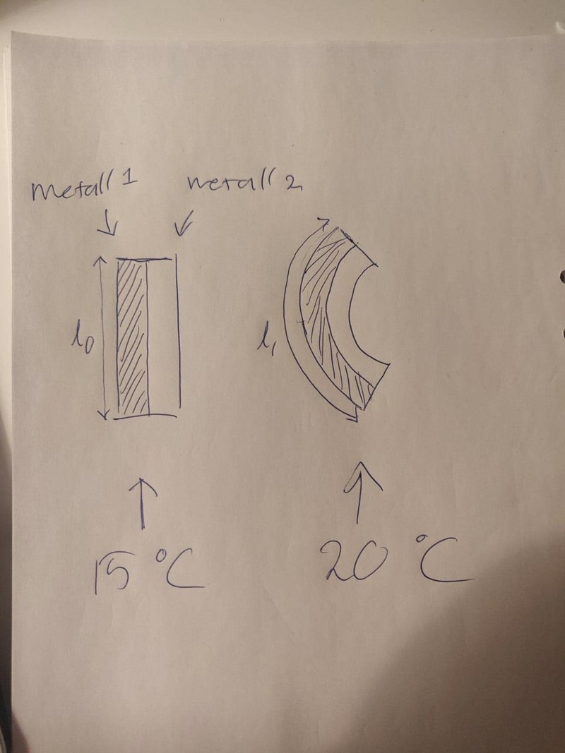 Vilka metaller skulle kunna användas till bimetall om metallerna ska vara "raka" vid 15 °C, och böja sig vid 20 °C?
