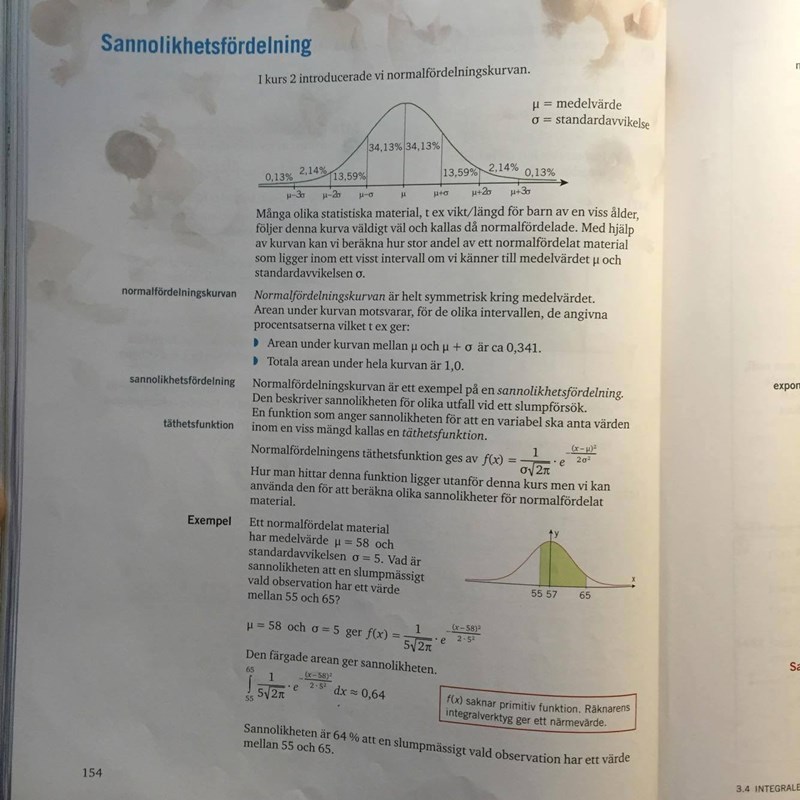 Om du inte kommer ihåg det som man sa om normalfördelning i Ma2 kan det vara bra att läsa igenom det.