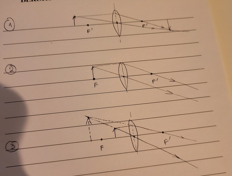 I det tredje fallet möts strålarna inte. Men då får du en virtuell bild från strålarnas förlängningar bakom objektet.